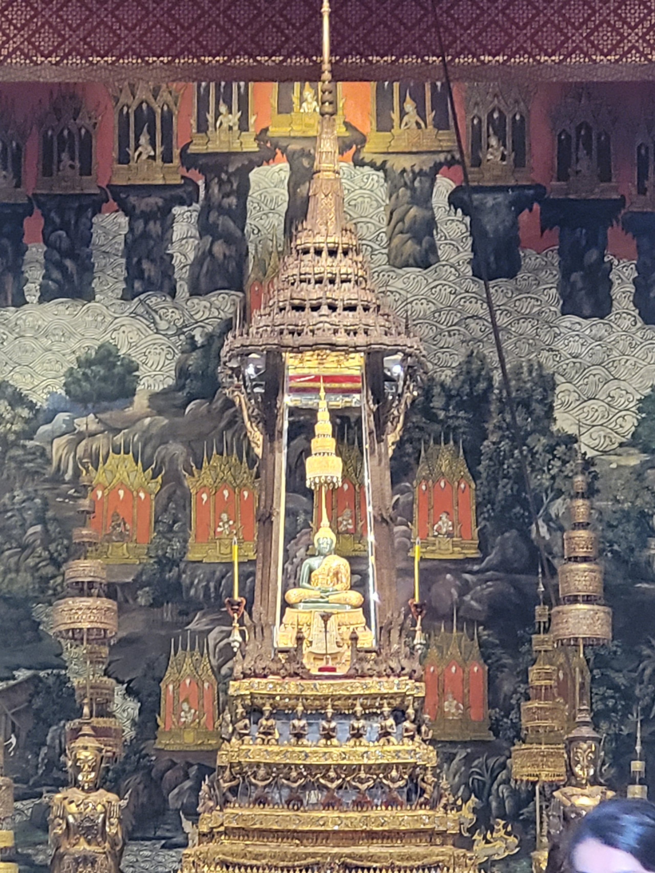 Den mest ærverdige buddhistiske pilegrimsgjenstanden er en liten Buddhastatue laget av det smaragdgrønne mineralet jaspis. Historien til denne 79 cm høye statuen er ukjent, men legenden forteller at den ble laget et sted i Nord-India ved århundreskiftet.