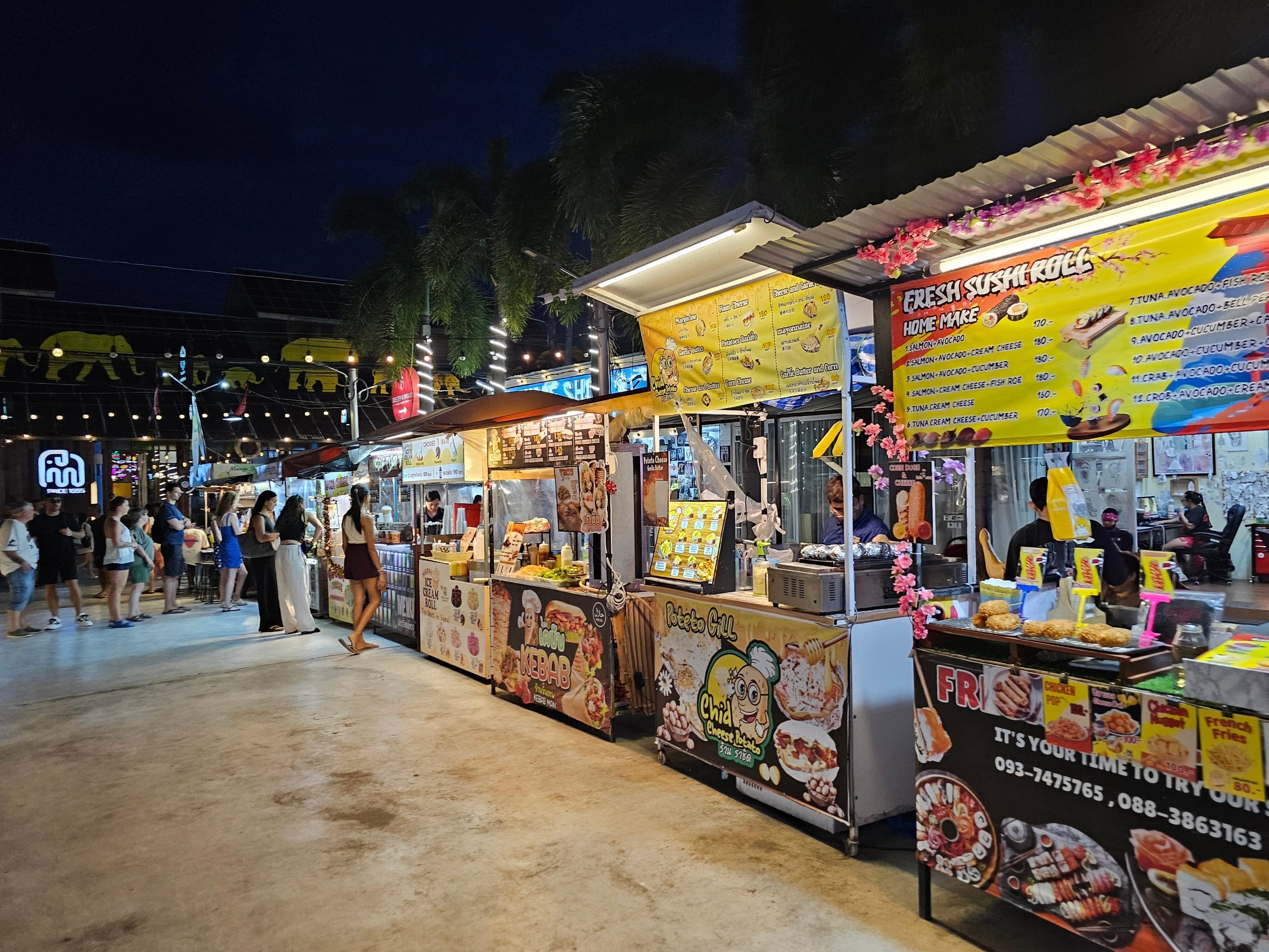 Og bare 5 minutter fra Walking Street ligger et annet gatematmarked - Free Wave Market.