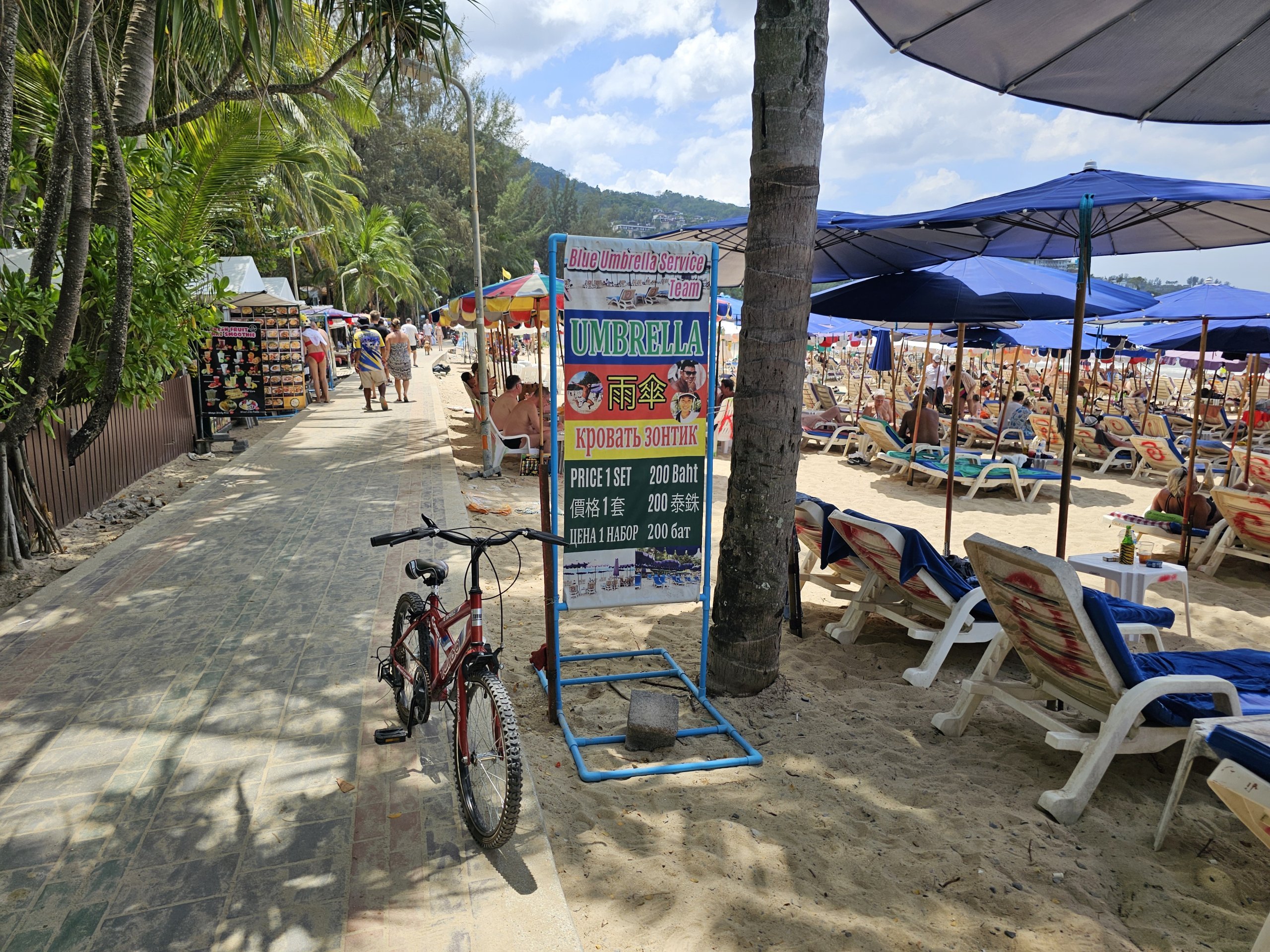 Det er problematisk å parkere rett ved stranden, men du kan for eksempel parkere gratis på den store parkeringsplassen ved Phuket FantaSea temapark, som ligger en 5-minutters spasertur fra sjøen.