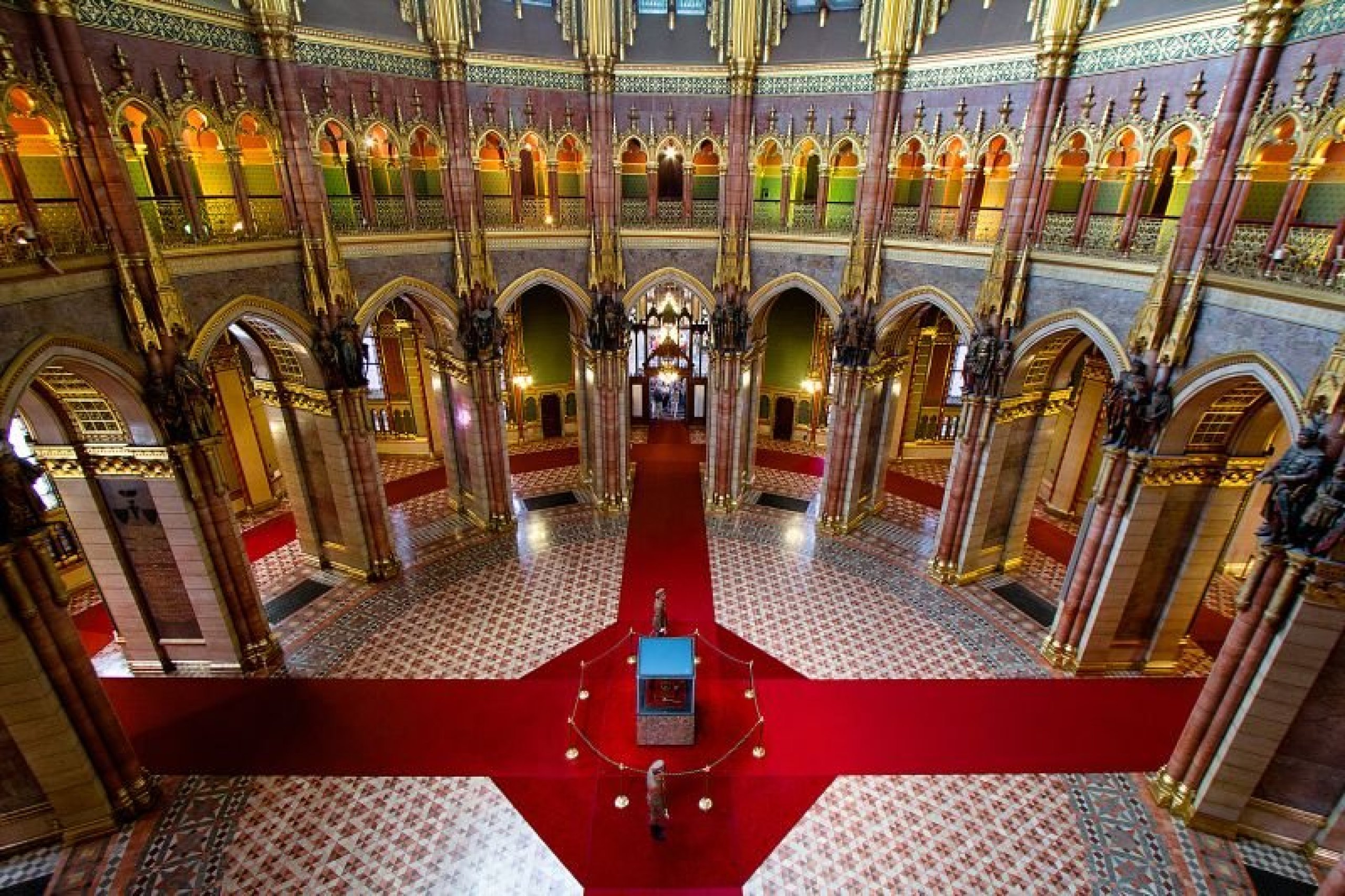 I den storslåtte Kuppelsalen, midt i parlamentsbygningen, kan du beundre de ungarske kronjuvelene og insigniene, som er åpne for publikum.