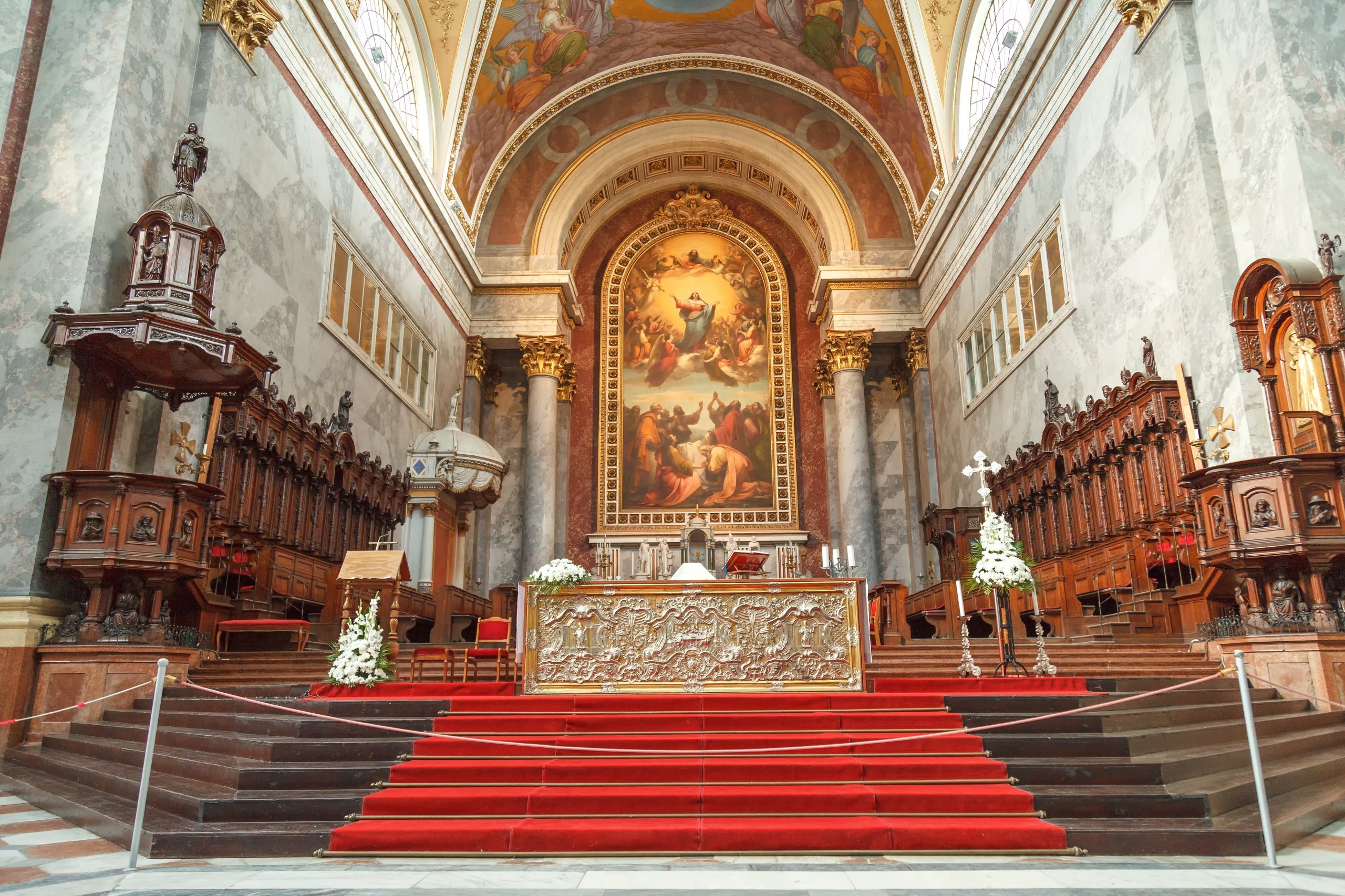 Maleriet bak alteret, av den italienske maleren Girolamo Michelangelo Grigoletti, er det største maleriet i verden som er malt på ett lerret.
